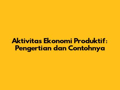 Aktivitas Ekonomi Produktif: Pengertian Dan Contohnya