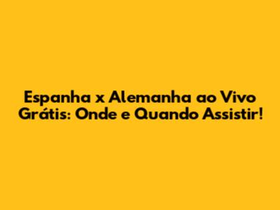 Assistir Espanha X Alemanha Ao Vivo Grátis: Onde E Quando!