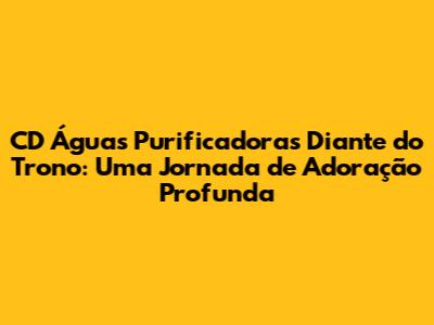 Ah, pessoal! Se você, como eu, é apaixonado por música gospel e adoração, com certeza já ouviu falar do CD 'Águas Purificadoras Diante do Trono'. Lançado pelo grupo Diante do Trono, esse álbum é um marco na música cristã brasileira, e por um bom motivo! Ele não é apenas um conjunto de canções; é uma experiência de adoração que te leva a um encontro real com Deus. Neste artigo, vamos mergulhar fundo nesse CD, explorando cada detalhe, desde as letras inspiradoras até a produção musical impecável. Preparem-se para uma viagem que vai fortalecer sua fé e te conectar ainda mais com a presença divina.