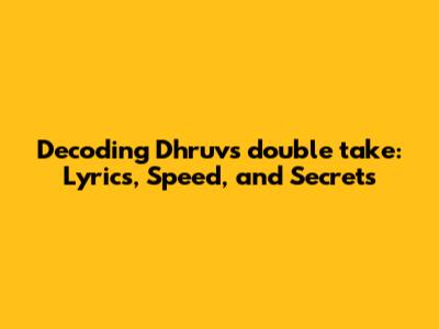 Dhruv's 'double Take': Lyrics, Speed & Secrets