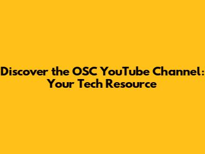 Discover The OSC YouTube Channel: Your Tech Resource