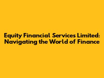 Hey guys! Ever wondered about equity financial services and what they're all about? Let's dive into the world of Equity Financial Services Limited, a key player in the financial landscape. This article aims to break down everything you need to know in a super engaging and easy-to-understand way.