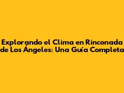 Explorando El Clima En Rinconada De Los Ángeles: Una Guía Completa