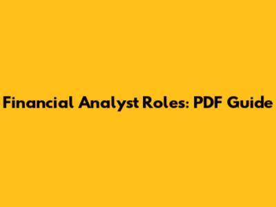 Financial Analyst Roles: PDF Guide