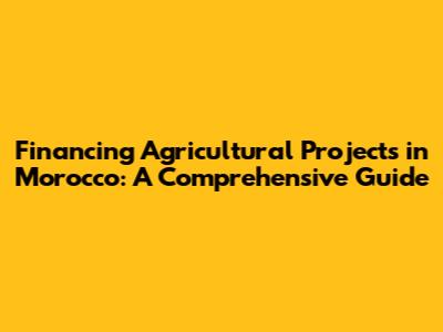Financing Agricultural Projects In Morocco: A Comprehensive Guide