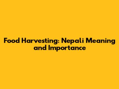 Food Harvesting: Nepali Meaning And Importance
