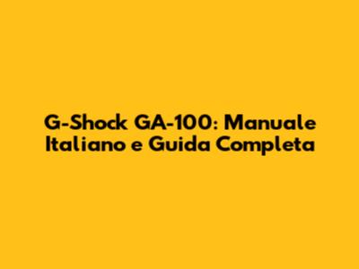 G-Shock GA-100: Manuale Italiano E Guida Completa