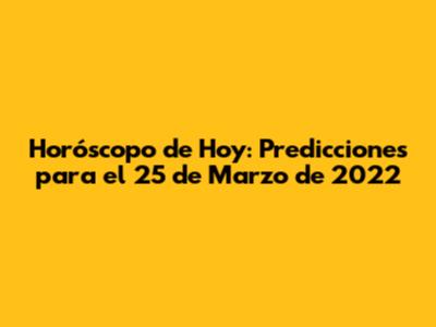 Horóscopo De Hoy: Predicciones Para El 25 De Marzo De 2022