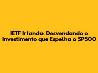 Olá, pessoal! Se você está buscando maneiras inteligentes de investir e diversificar seus ativos, provavelmente já ouviu falar do SP500, o índice que reflete o desempenho das 500 maiores empresas dos Estados Unidos. Mas e se eu te dissesse que existe uma forma de investir no SP500, com um toque irlandês? É aí que entra a IETF Irlanda, uma opção que pode ser a chave para você alcançar seus objetivos financeiros. Vamos mergulhar fundo nesse universo e descobrir tudo sobre a IETF Irlanda e como ela pode ser a sua porta de entrada para o mundo dos investimentos. Prepare-se para uma jornada cheia de informações valiosas e dicas para você tomar decisões financeiras mais assertivas.