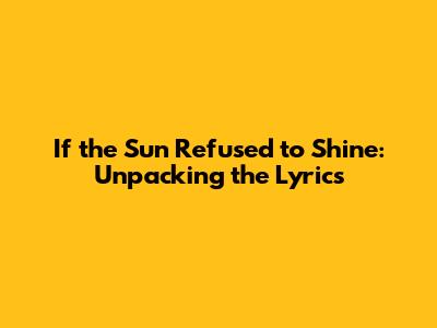 If The Sun Refused To Shine: Unpacking The Lyrics