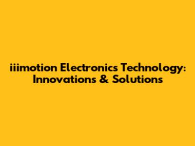 Iiimotion Electronics Technology: Innovations & Solutions