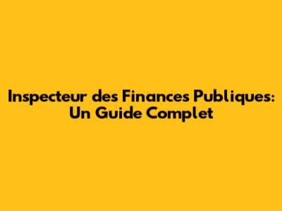 Inspecteur Des Finances Publiques: Tout Savoir