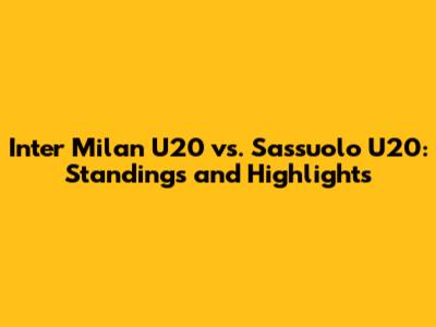 Inter U20 Vs. Sassuolo U20: Standings And Highlights