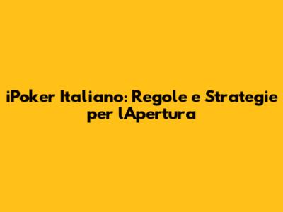 Strategie Avanzate per l'Apertura in iPoker Italiano
