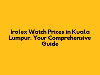 Understanding these factors will give you a solid foundation for evaluating Irolex watch prices in Kuala Lumpur.