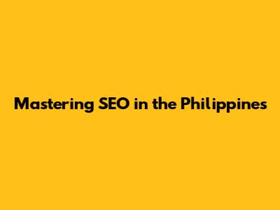 Mastering SEO In The Philippines