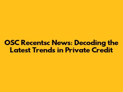 OSC Recentsc News: What's Happening In Private Credit?