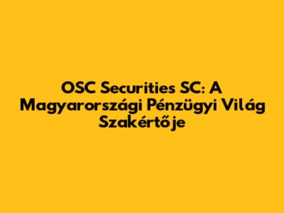 OSC Securities SC: A Magyarországi Pénzügyi Világ Szakértője