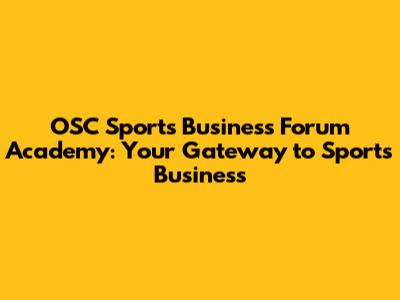 OSC Sports Business Forum Academy: Your Gateway To Sports Business