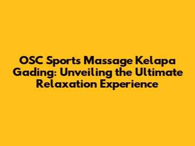 OSC Sports Massage Kelapa Gading: Your Guide To Relaxation