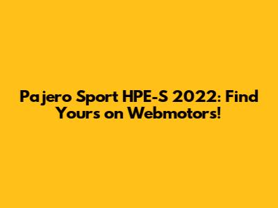 Hey guys! Are you on the hunt for a reliable, stylish, and powerful SUV? Look no further! Today, we're diving deep into the Pajero Sport HPE-S 2022 and how you can snag one for yourself on Webmotors. Whether you're an off-road enthusiast or just need a spacious family vehicle, the Pajero Sport HPE-S 2022 is definitely worth considering. Let's explore what makes this SUV so special and why Webmotors is the perfect place to find it.