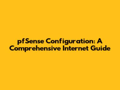 PfSense Configuration: A Comprehensive Internet Guide