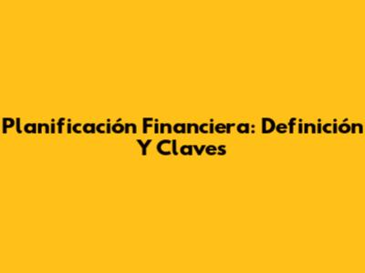 Planificación Financiera: Definición Y Claves