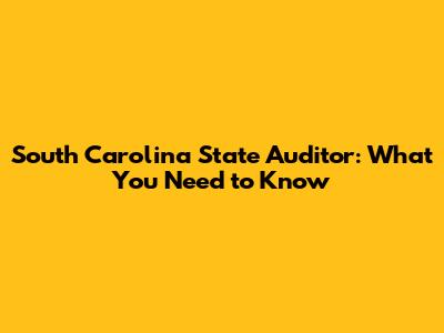 South Carolina State Auditor: What You Need To Know