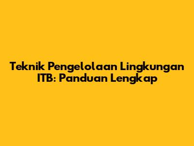 Teknik Pengelolaan Lingkungan ITB: Panduan Lengkap