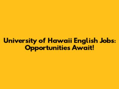 Understanding these different types of university of hawaii english jobs will help you focus your search and tailor your application to the specific requirements of each position.