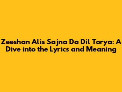 Zeeshan Ali: Exploring 'Sajna Da Dil Torya' Lyrics